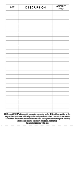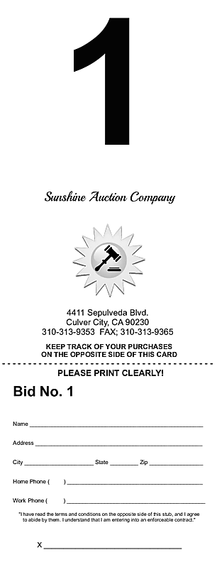 Browse Design (Giant Auction Bid Card With Stub - 4.25"x11")