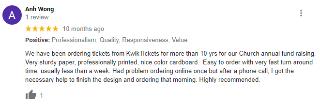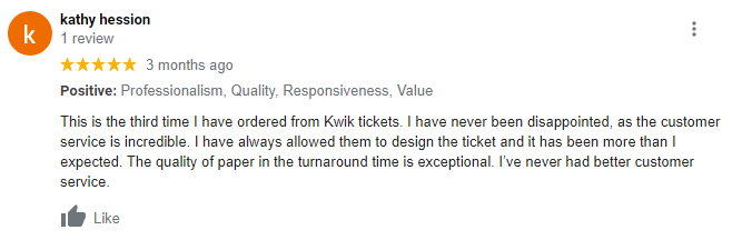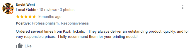 I used kwiktickets.com inc services for my raffle tickets and I must tell that I am much pleased with the quality of printed cards their prompt and professional service. Good luck to your business.
